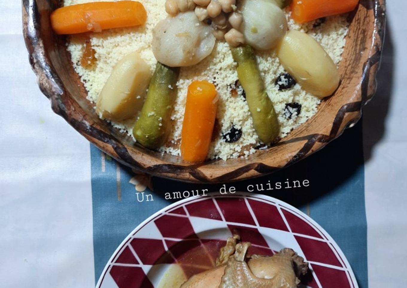 - Servez le couscous aux poulet fermier et légumes chaud.