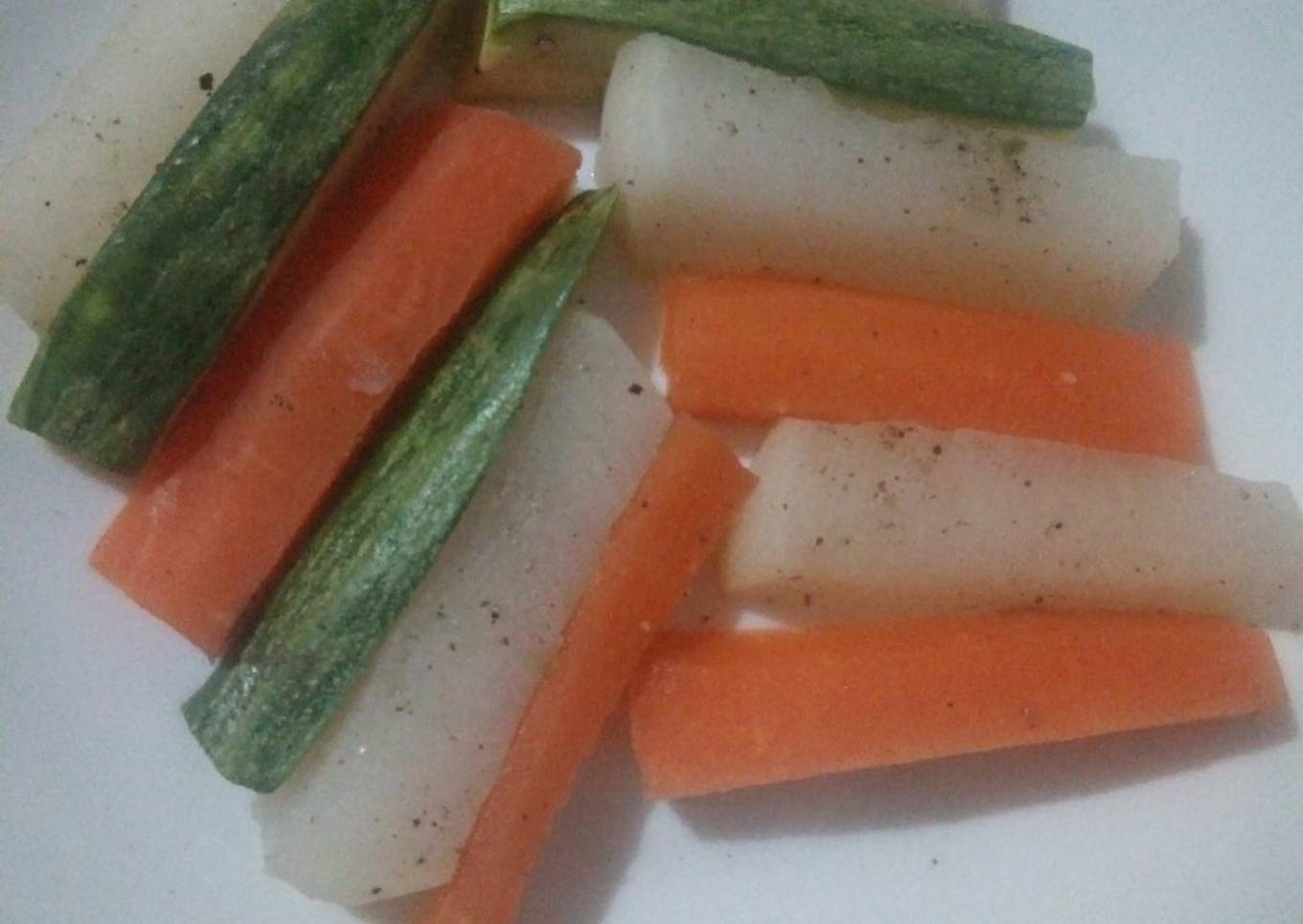 - Déposez les légumes sur la vapeur, en ajoutant le sel et le poivre noire. Pendant 15 minutes, déposez les légumes dans un plat. Bon appéti