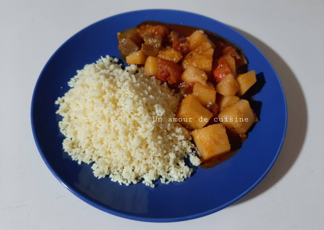 - Chauffez l'huile dans une marmite ou le bas fu couscoussier, rajoutez l'oignon et faites revenir ensuite le reste des légumes taillés, la tomate concentrée et l'assaisonnement.
