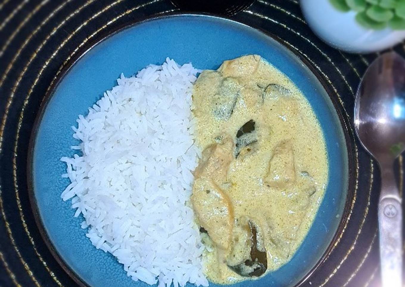 Une variante de la cuisine indienne un mélange subtil entre le sucré du lait de coco et le salé du curry que vous dire à part que c’est un vrai régal en bouche. #poulet