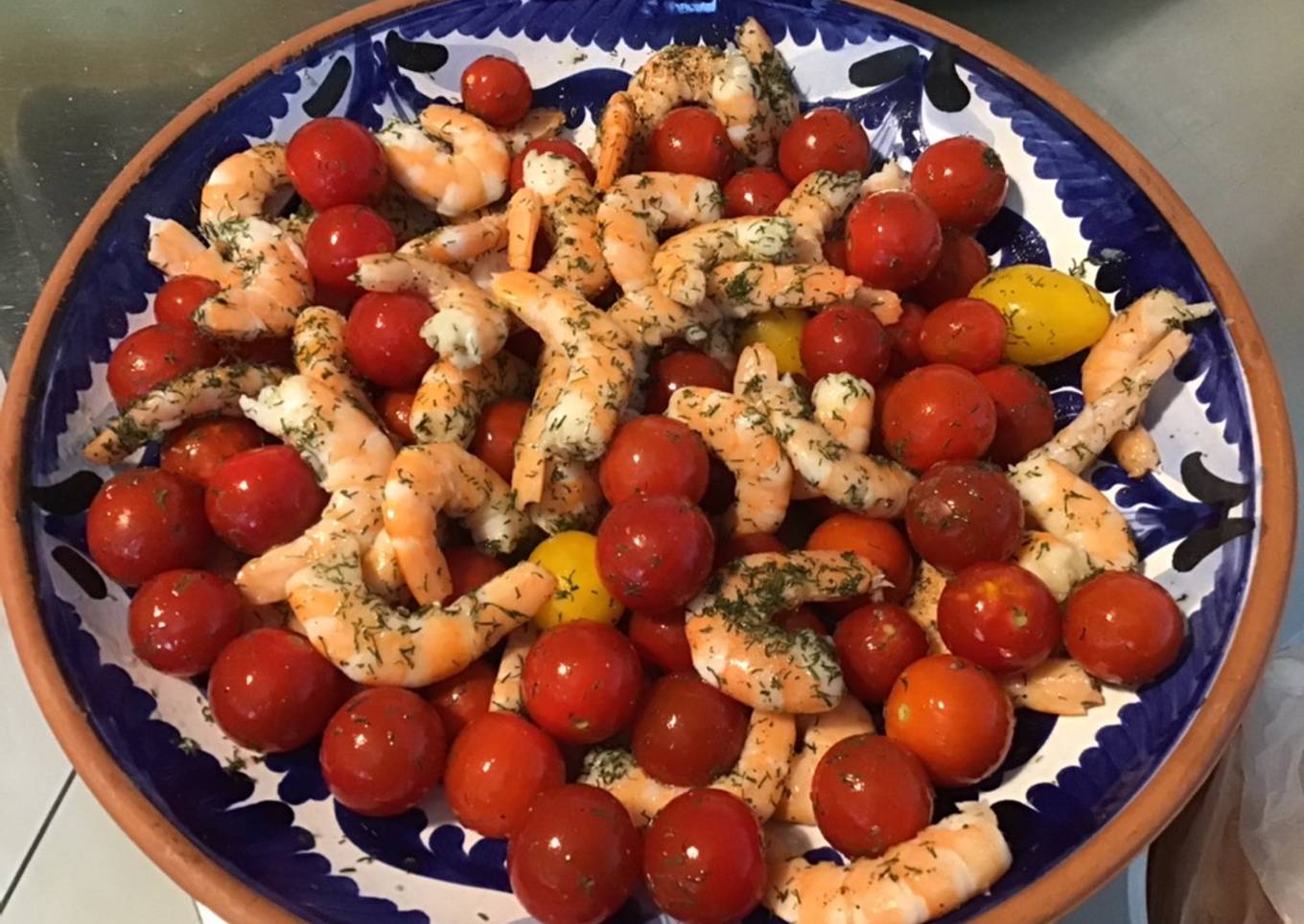 Crevettes roses aux tomates cerises, citron et aneth (apéro)