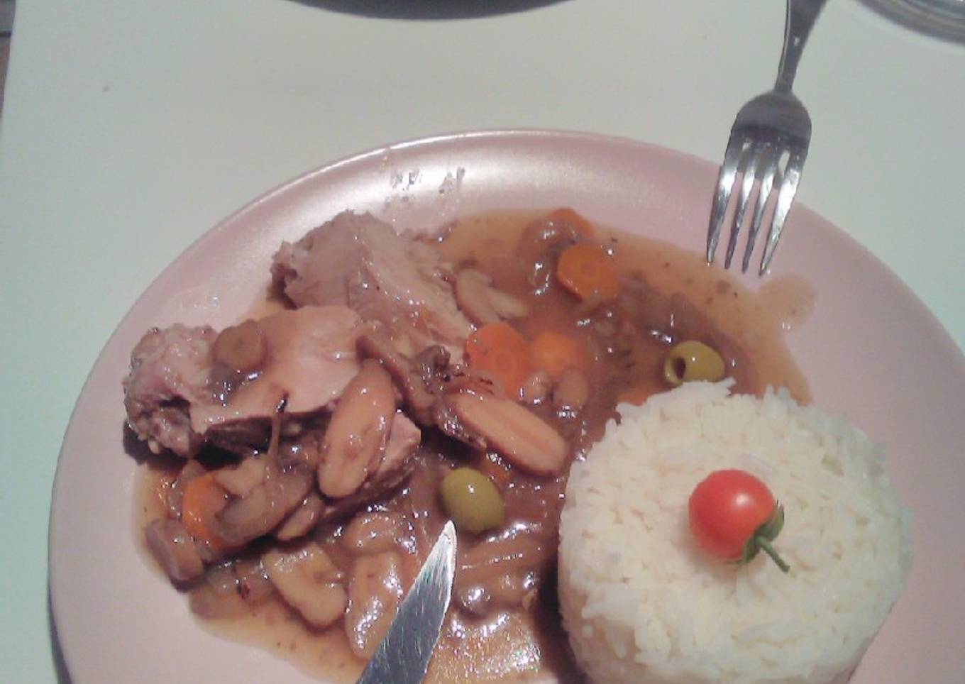 Servi avec du riz parfumé, je trouve cette recette sympa, surtout que le rôti est tendre à souhait. La cuisson varie suivant la grosseur du rôti . C'est la cuisson mijotée qui fait toute la différence